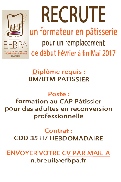 EFBPA RECRUTE FORMATEUR PATISSIER 2017